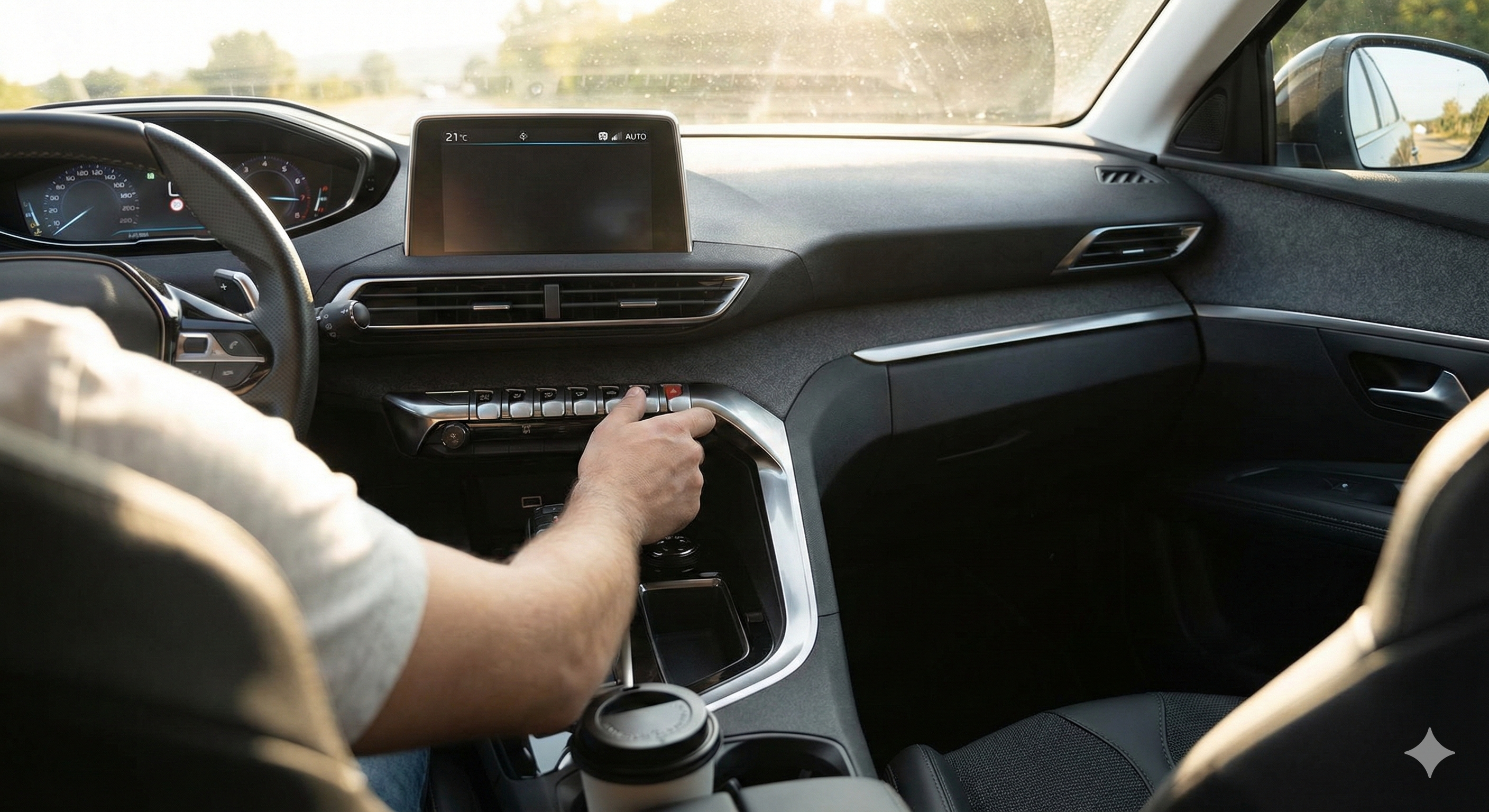 - 도착 5분 전: A/C 버튼을 끄고 송풍 모드(바람만 나오게)로 강하게 틀어주세요.